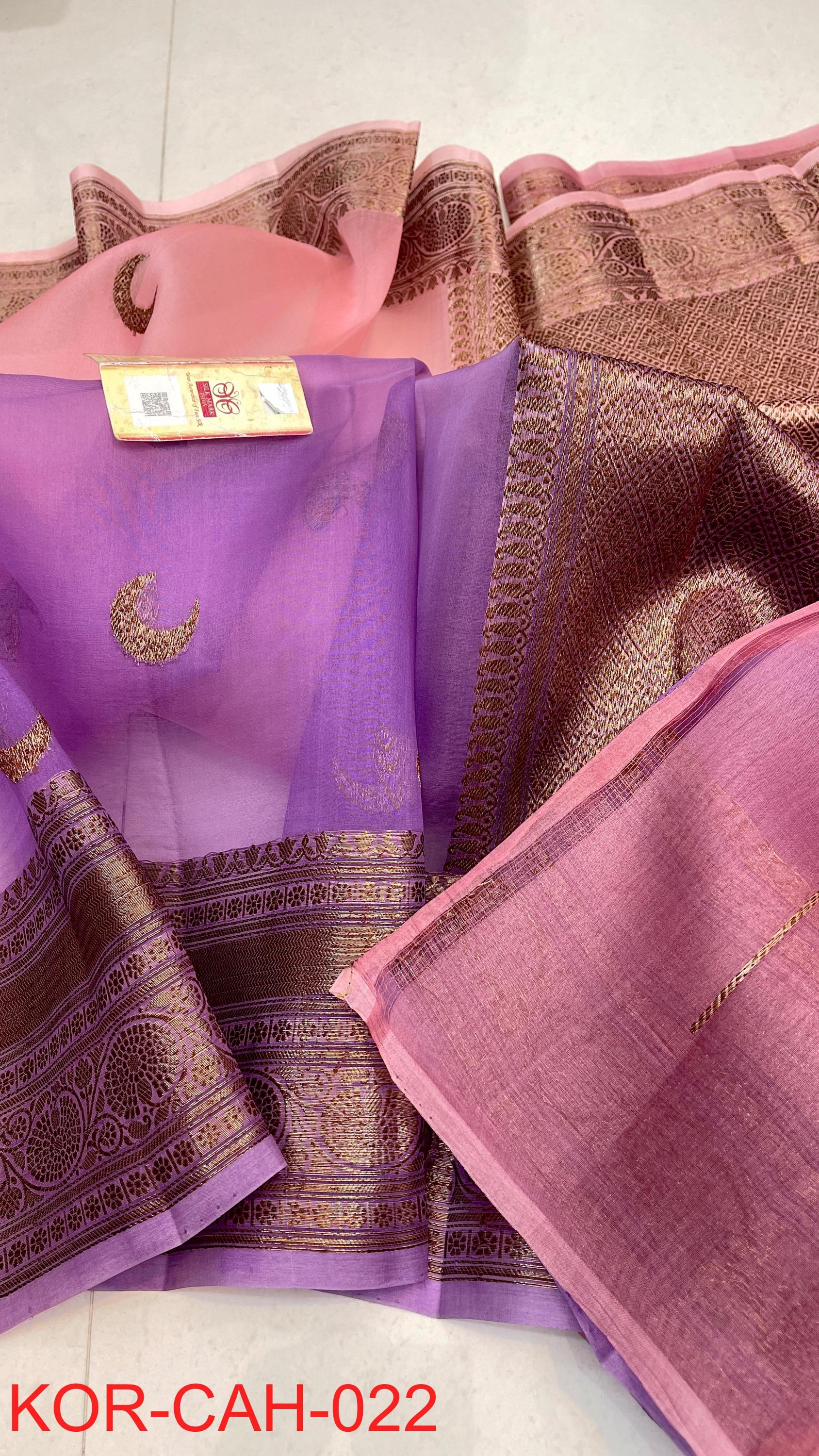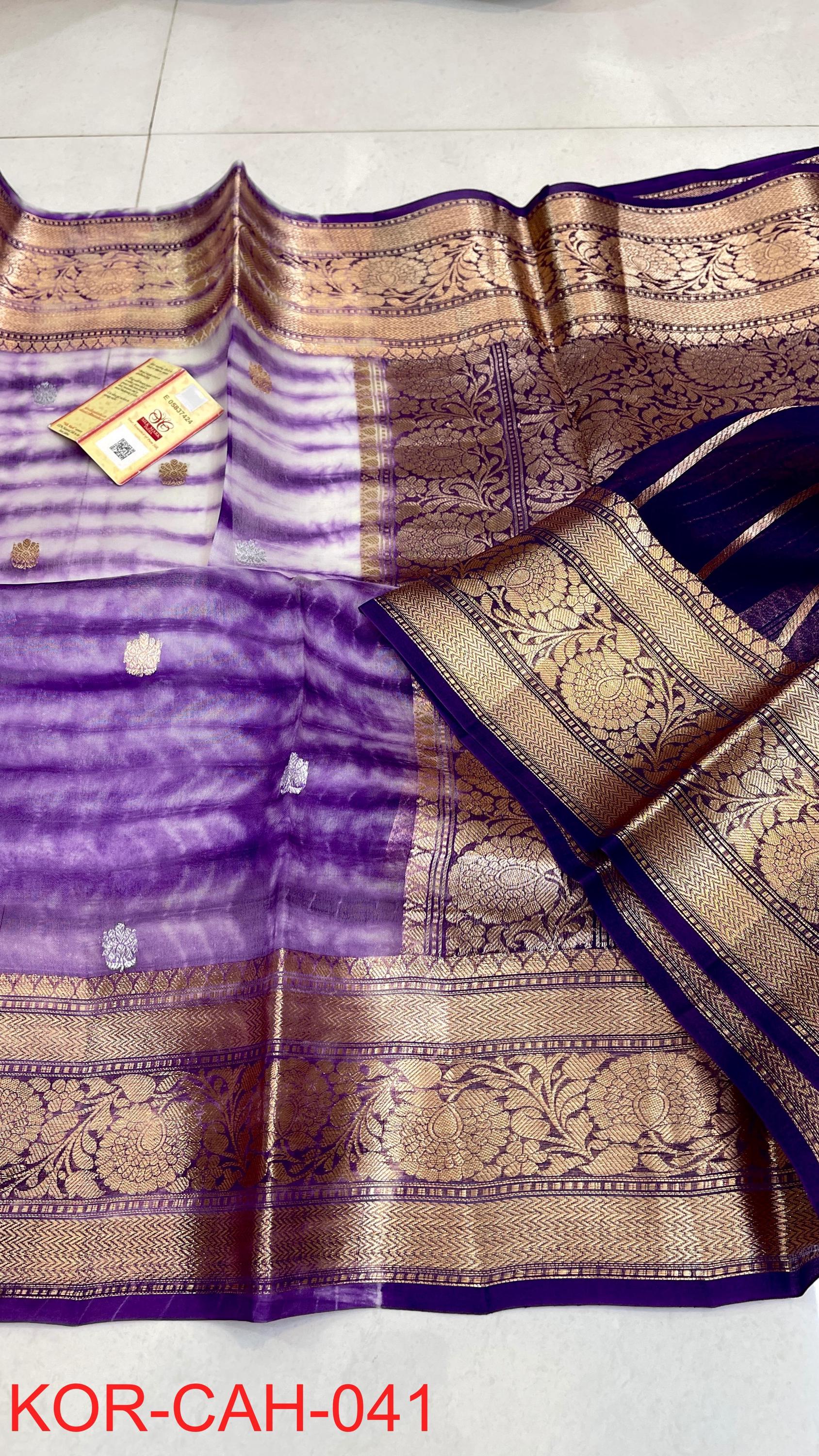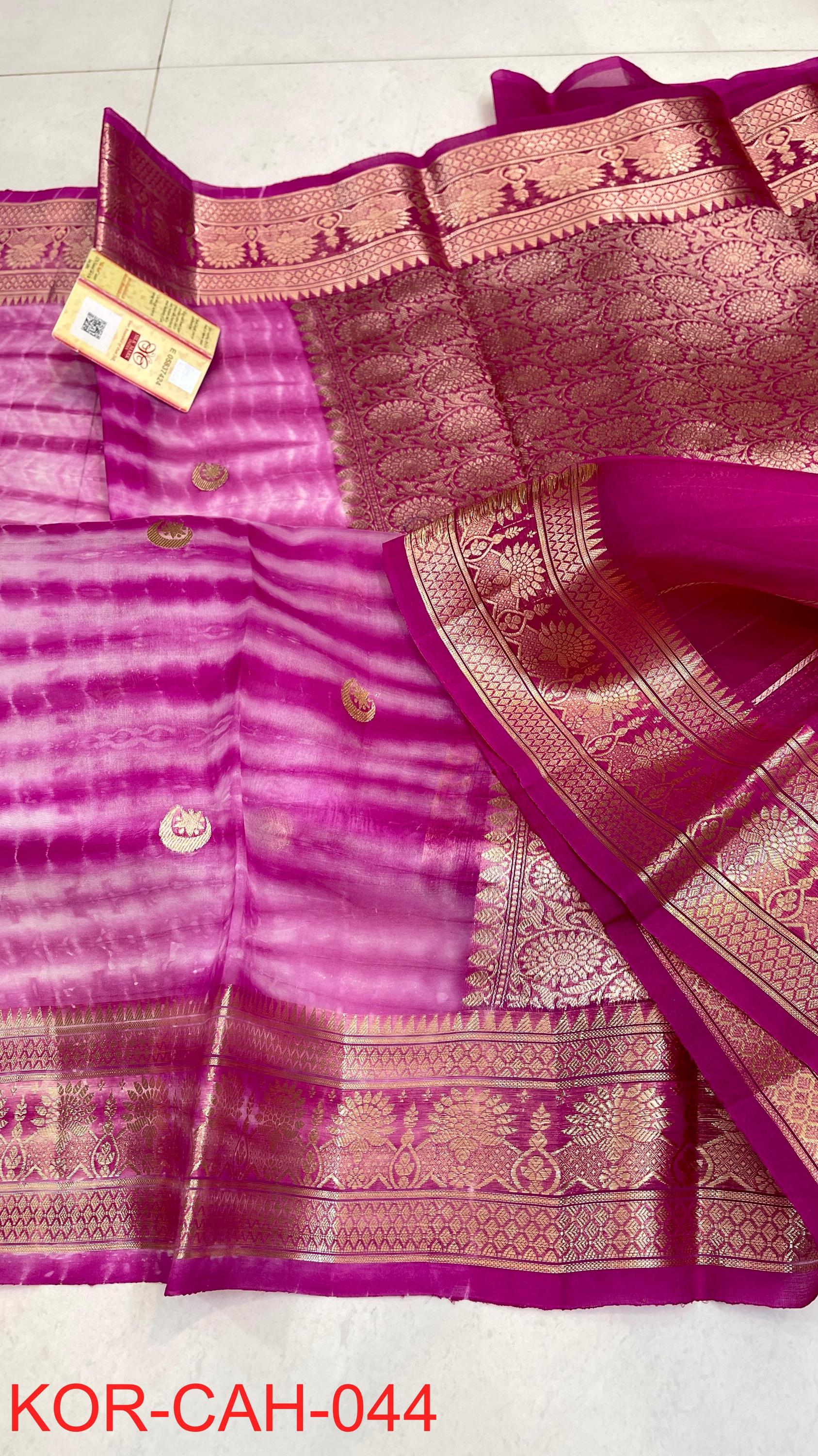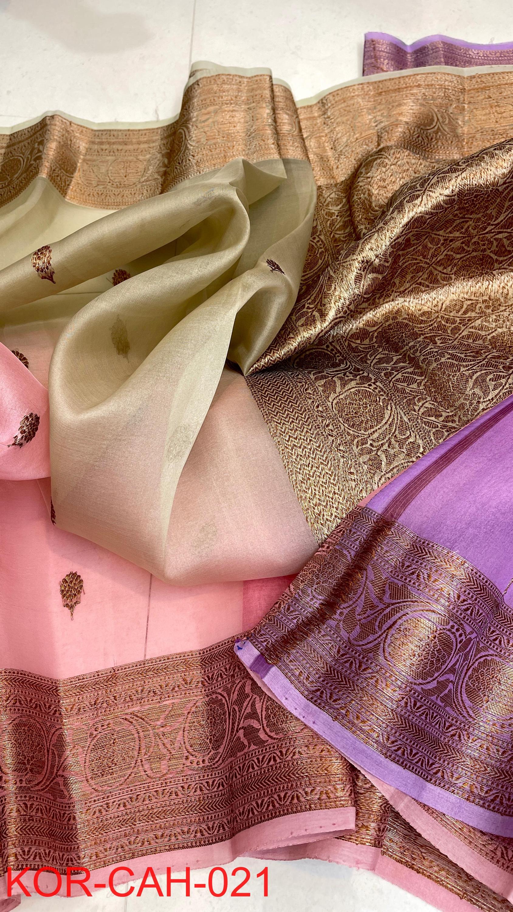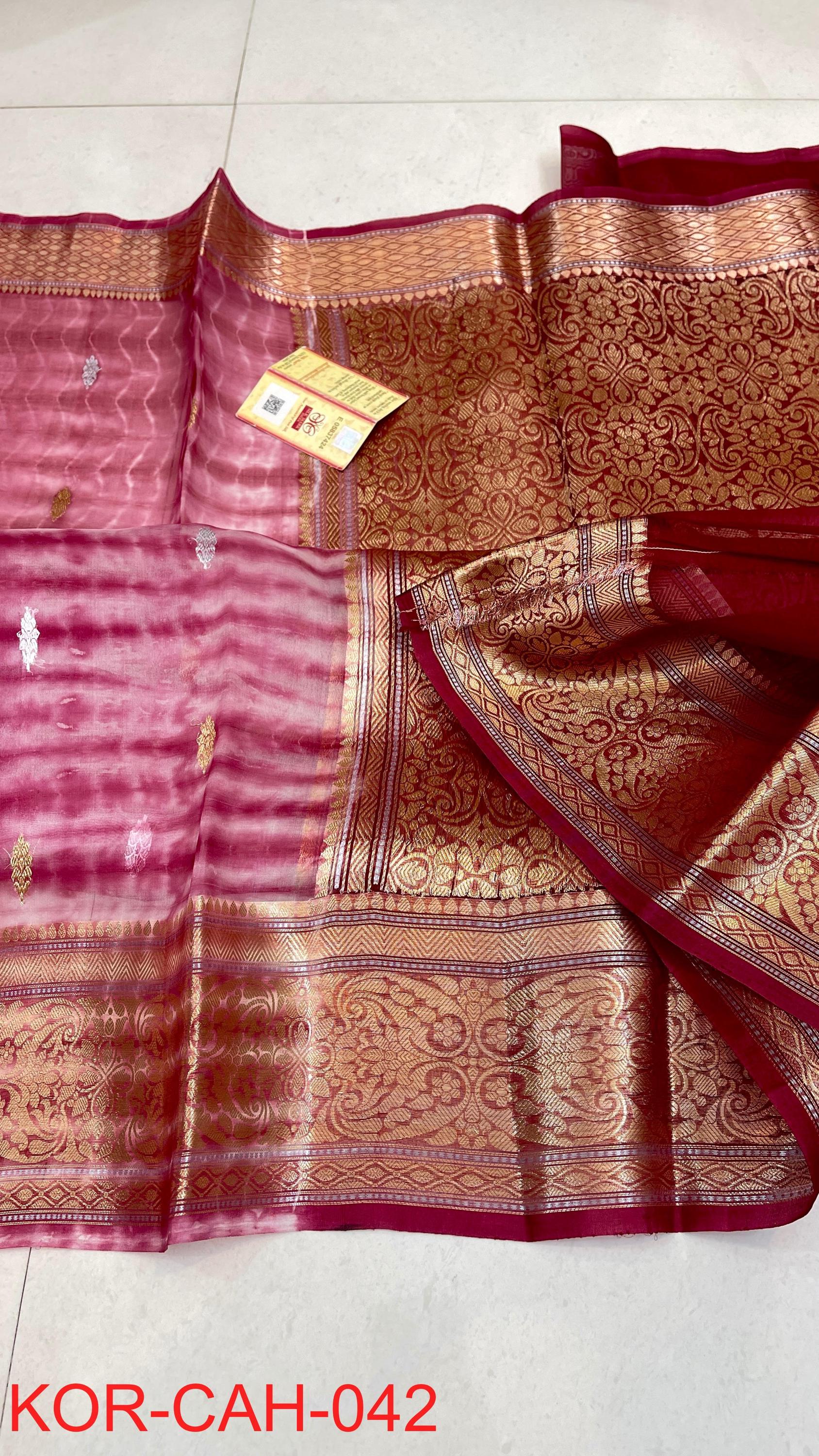 * Fabric: 100% Pure Kora Organza/Tissue Silk (Silk Mark Certified) offering a sheer, crisp, and luminous drape