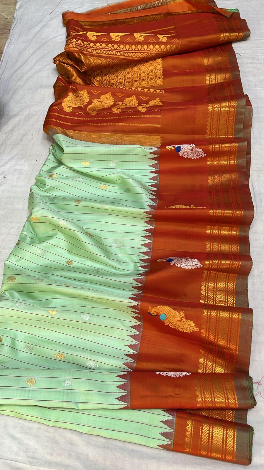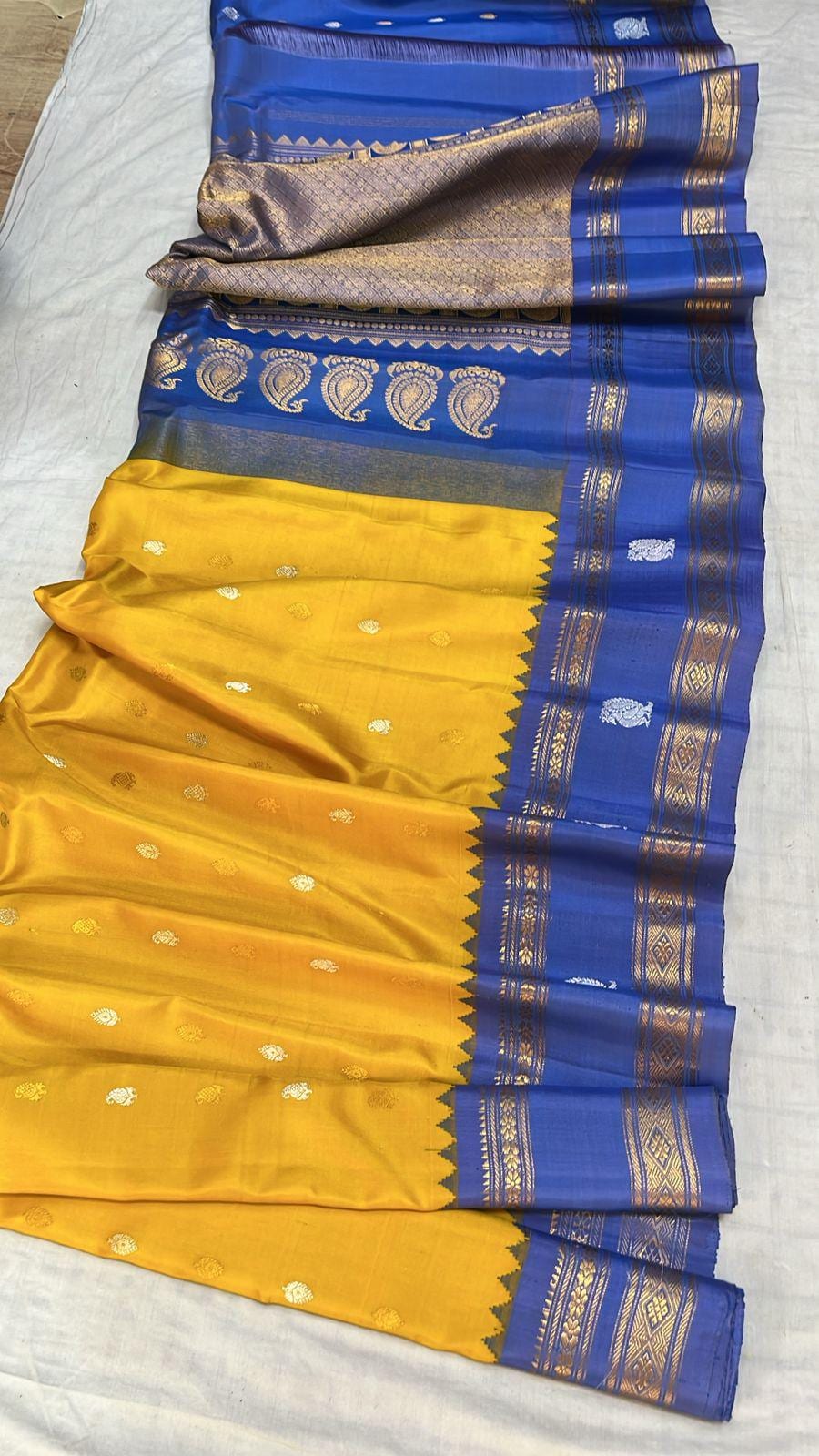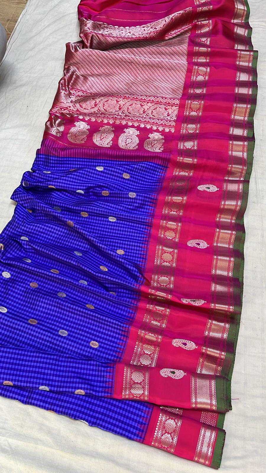 * Material: 100% Pure Handloom Gadwal Silk offering a beautifully crisp, lightweight, and regal drape