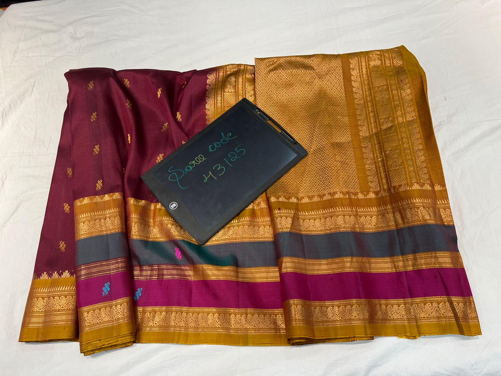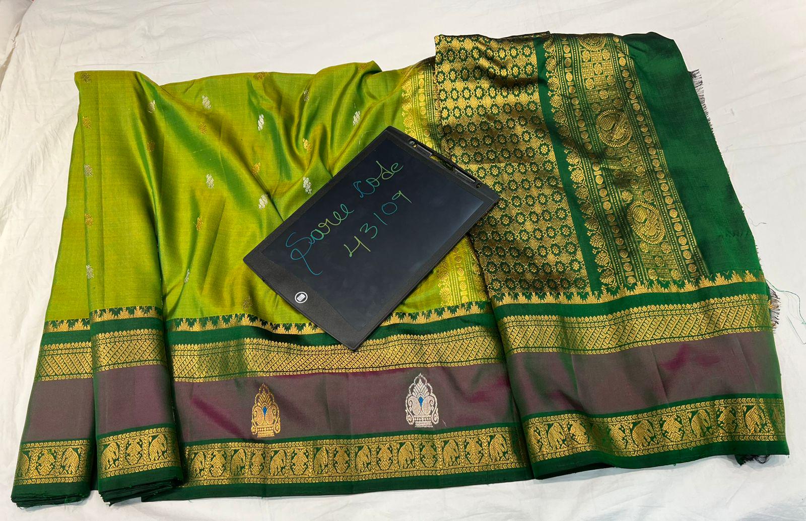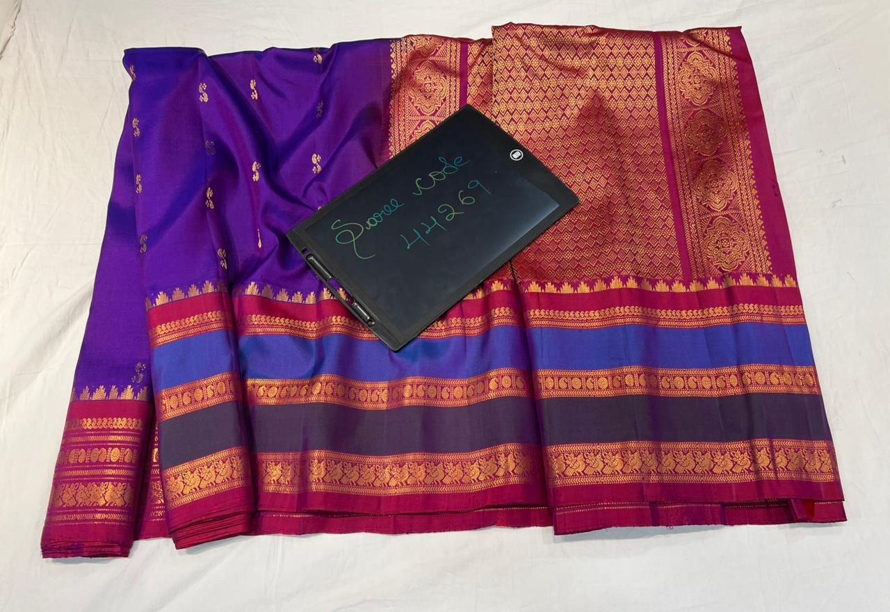 * Material: 100% Pure Handloom Gadwal Silk offering a beautifully crisp, lightweight, and regal drape