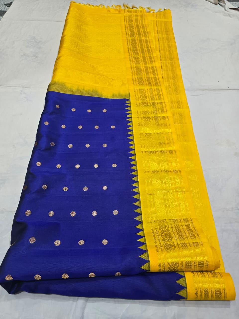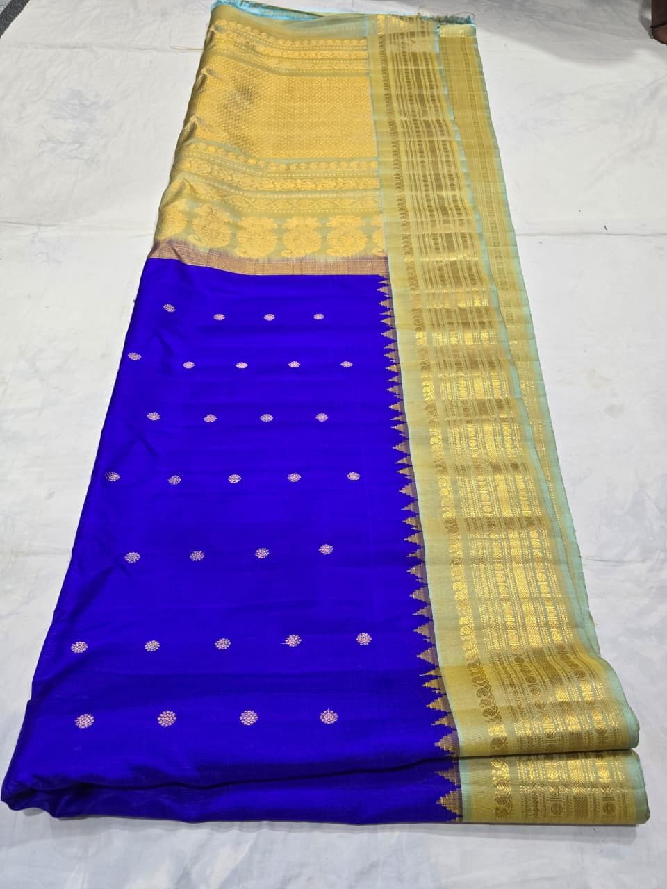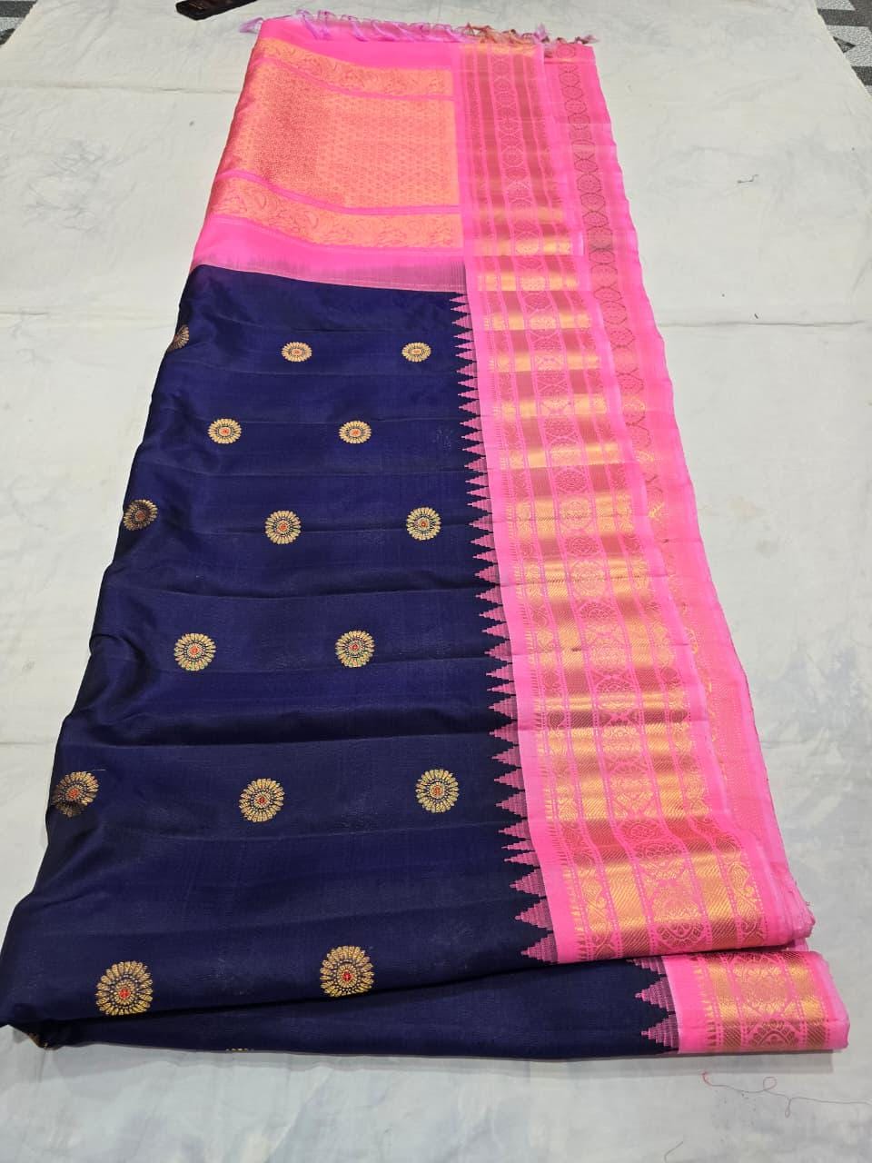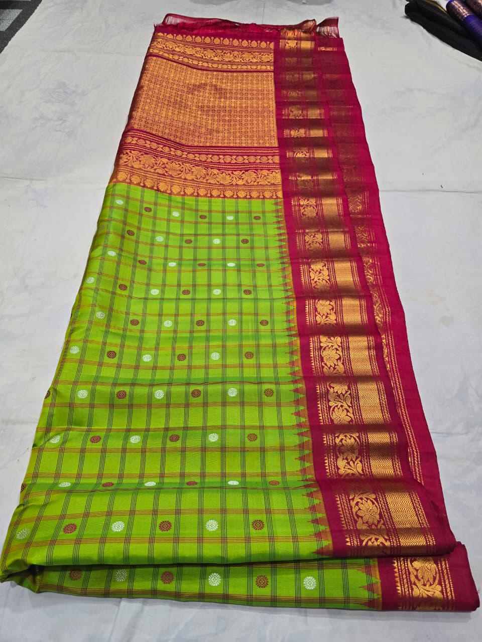 * Material: Premium 100% Pure Handloom Gadwal Silk (Double Warp) offering a rich, durable, and incredibly elegant drape