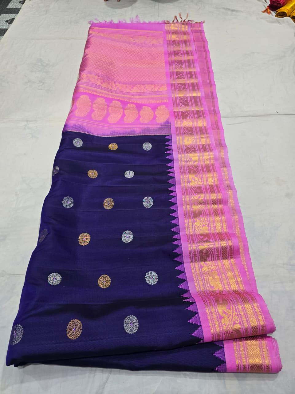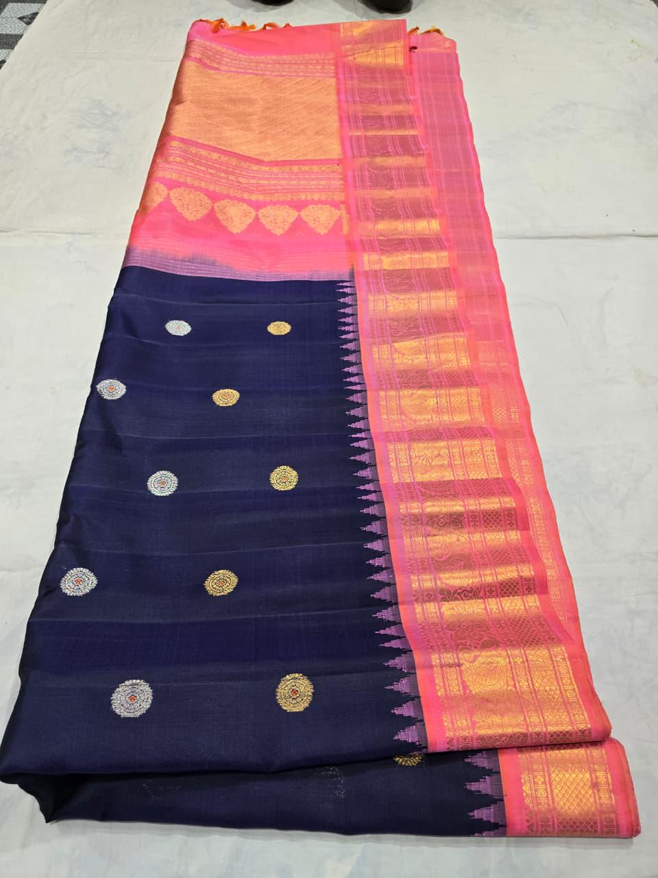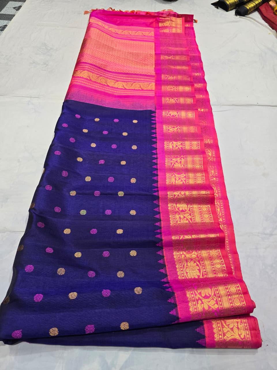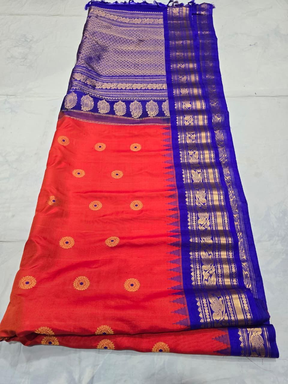 * Material: Premium 100% Pure Handloom Gadwal Silk (Double Warp) offering a rich, durable, and incredibly elegant drape