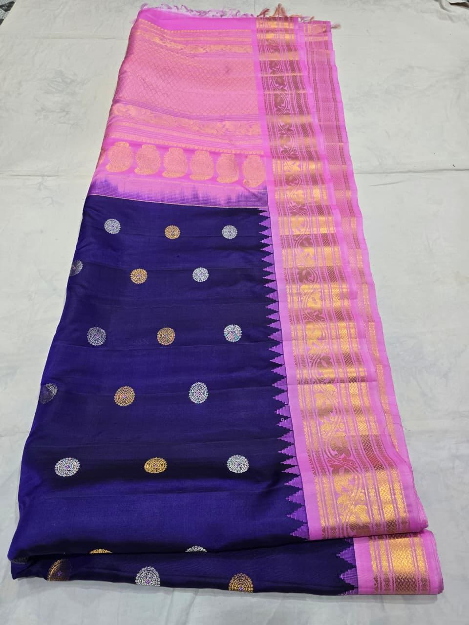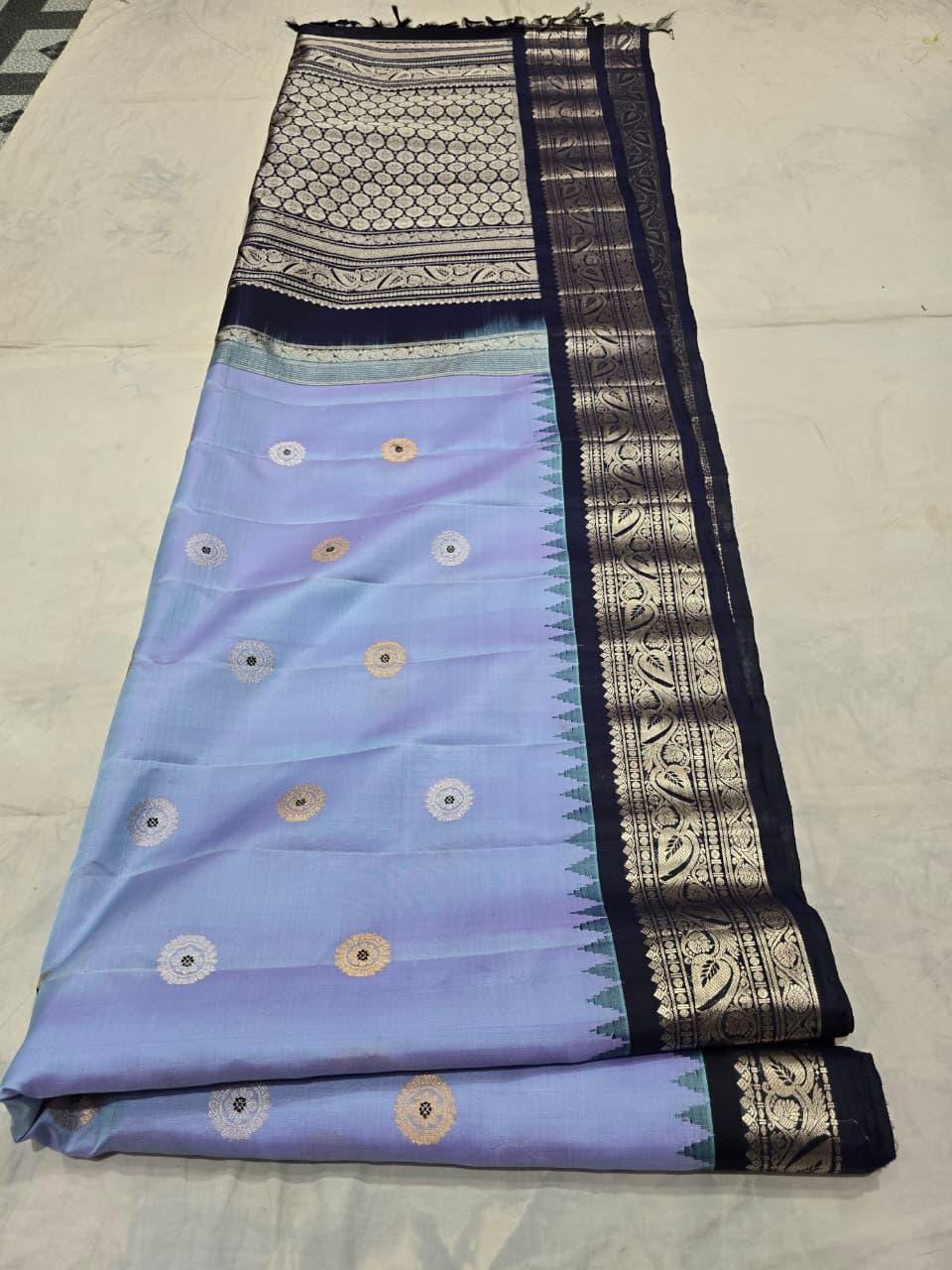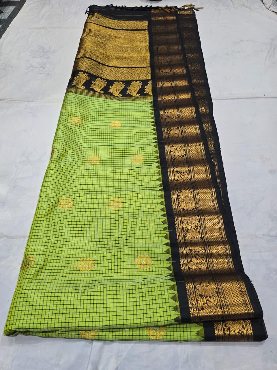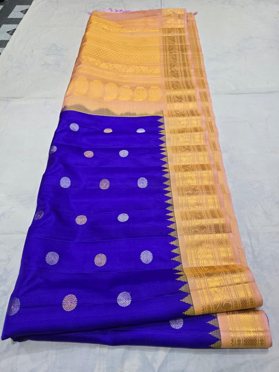 * Material: Premium 100% Pure Handloom Gadwal Silk (Double Warp) offering a rich, durable, and incredibly elegant drape
