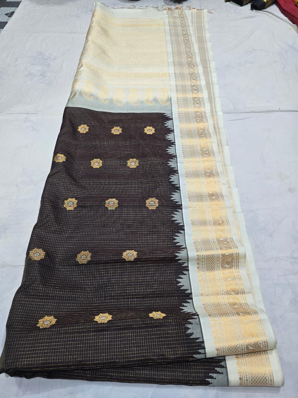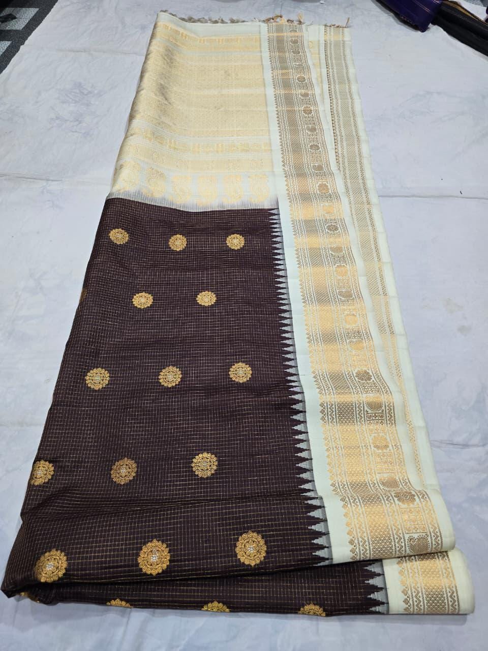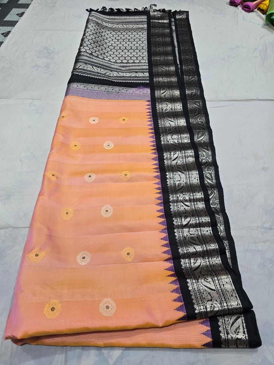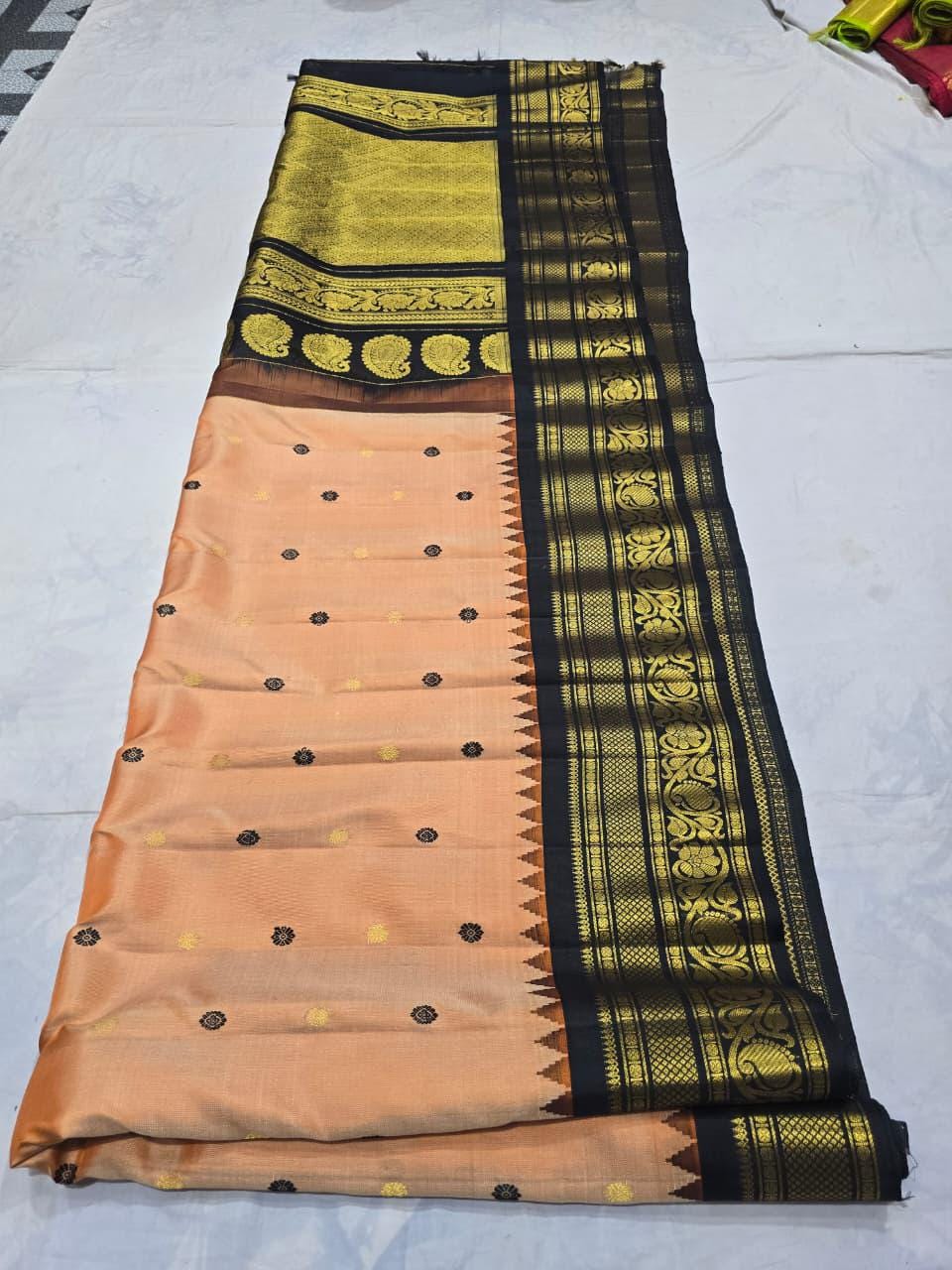 * Material: Premium 100% Pure Handloom Gadwal Silk (Double Warp) offering a rich, durable, and incredibly elegant drape