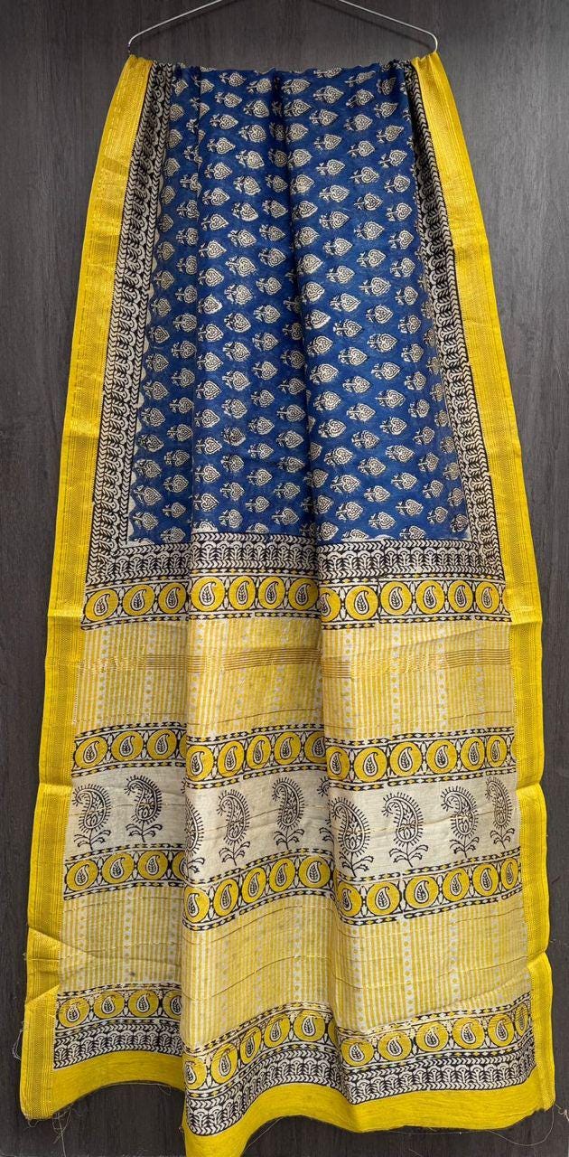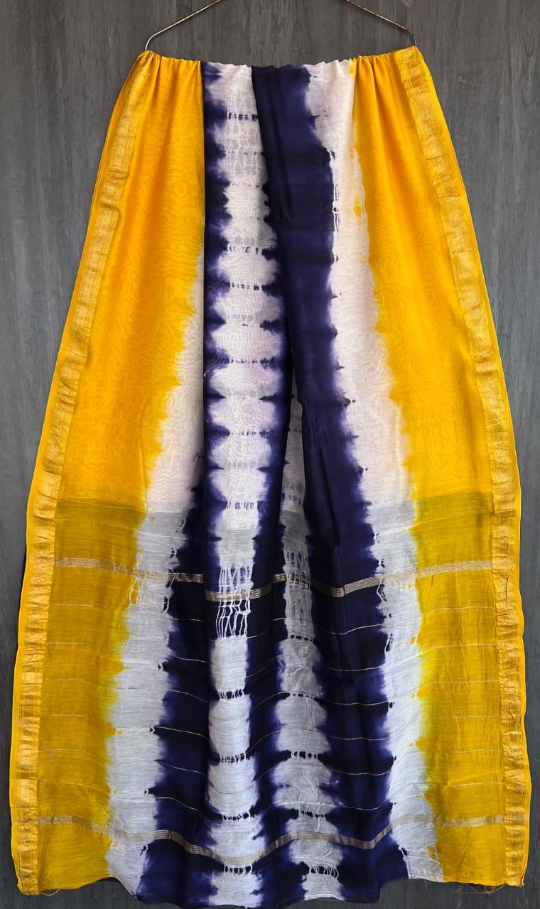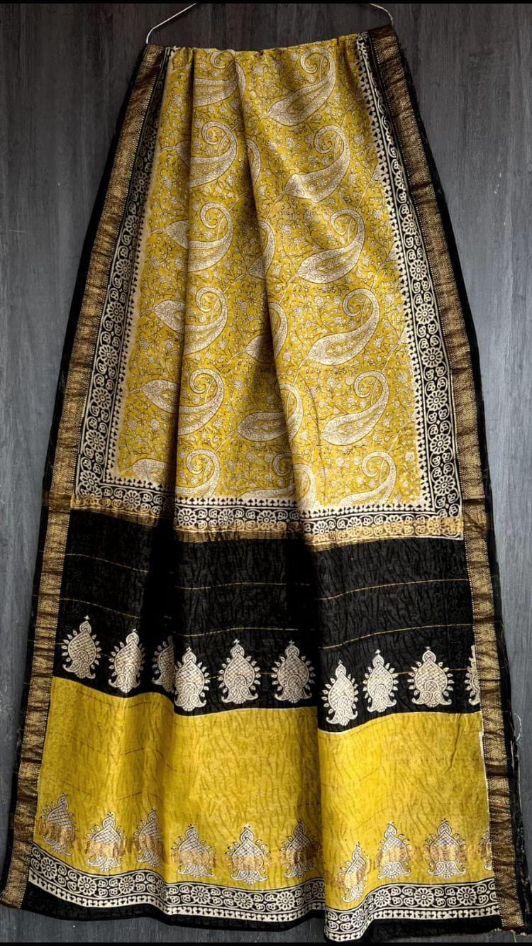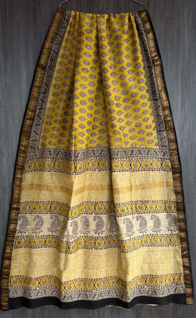 * Design: Bright yellow body with traditional block-printed motifs and a classic metallic zari border