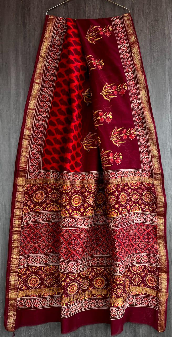 * Care Instructions: Dry clean recommended for the first wash to preserve the block prints and zari, gentle hand wash thereafter