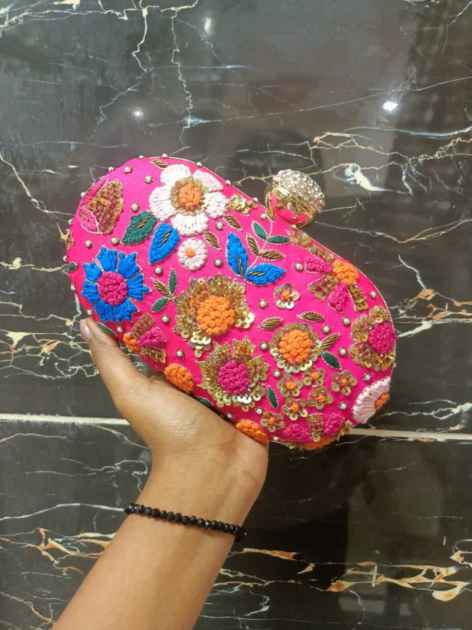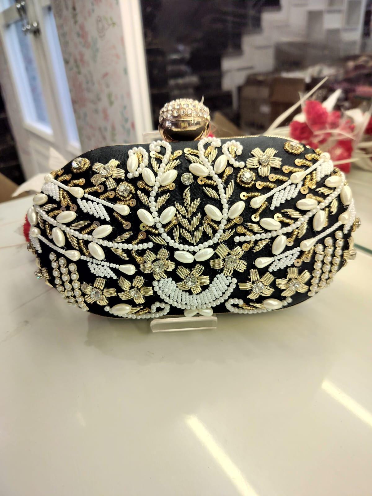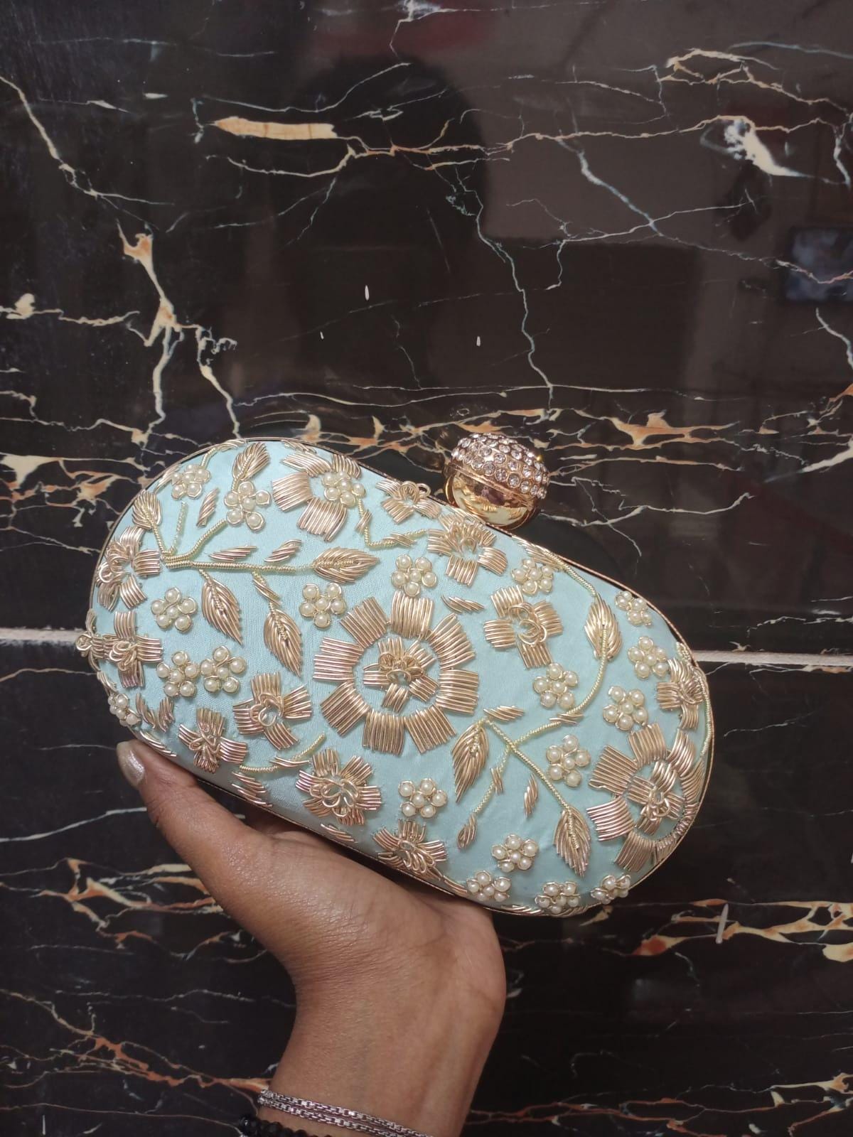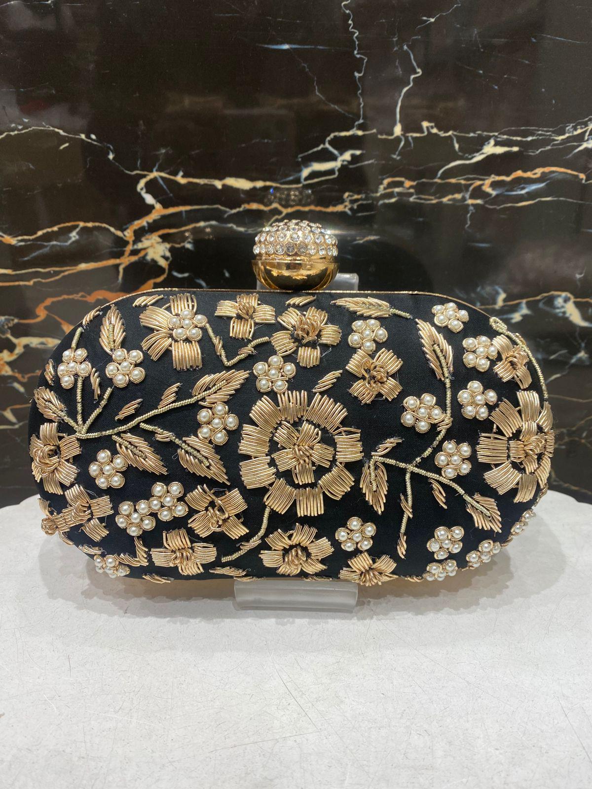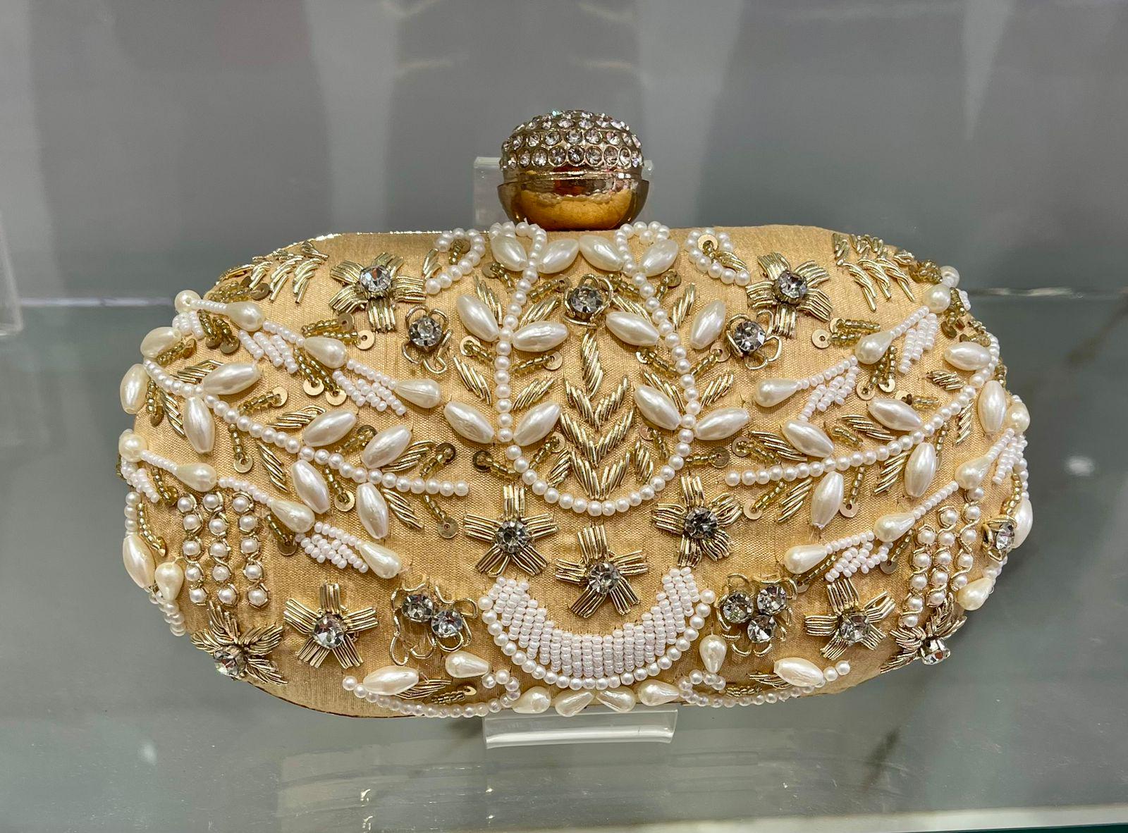 * Details: Intricate beadwork, shimmering gold sequins, and a secure, jewel-studded metallic clasp