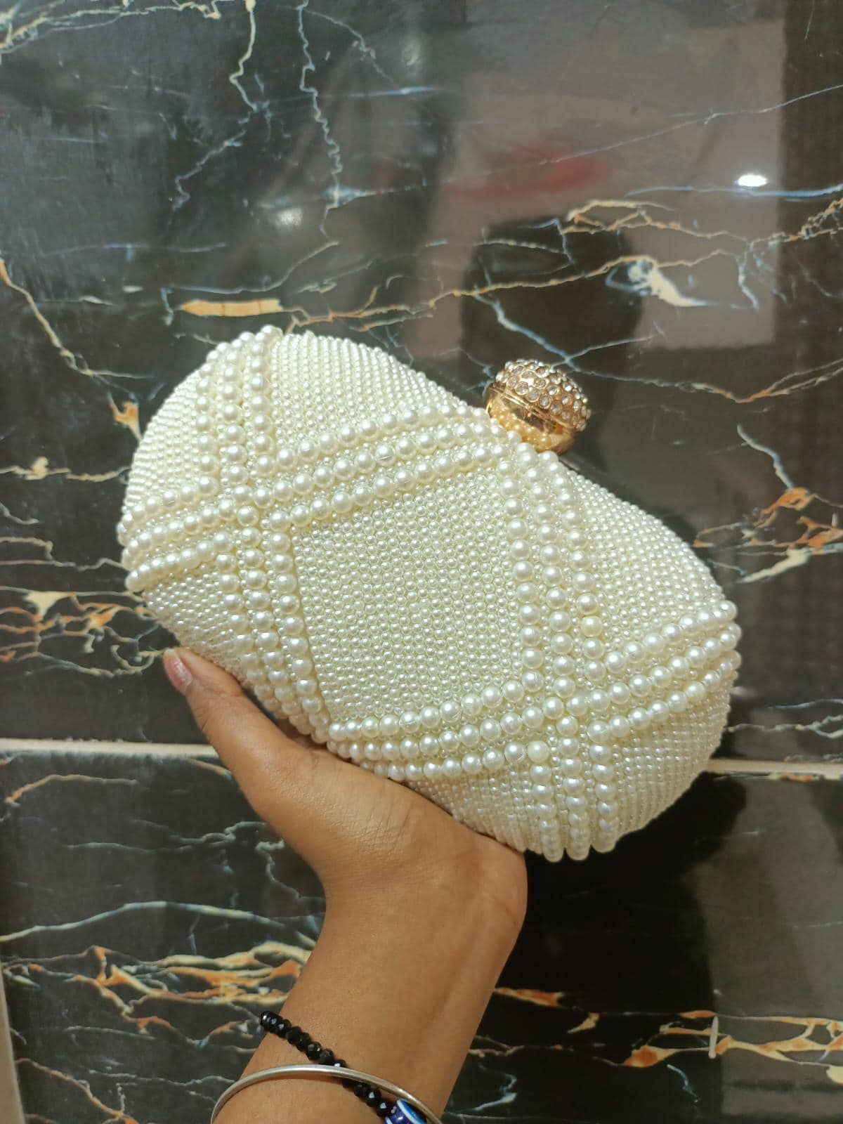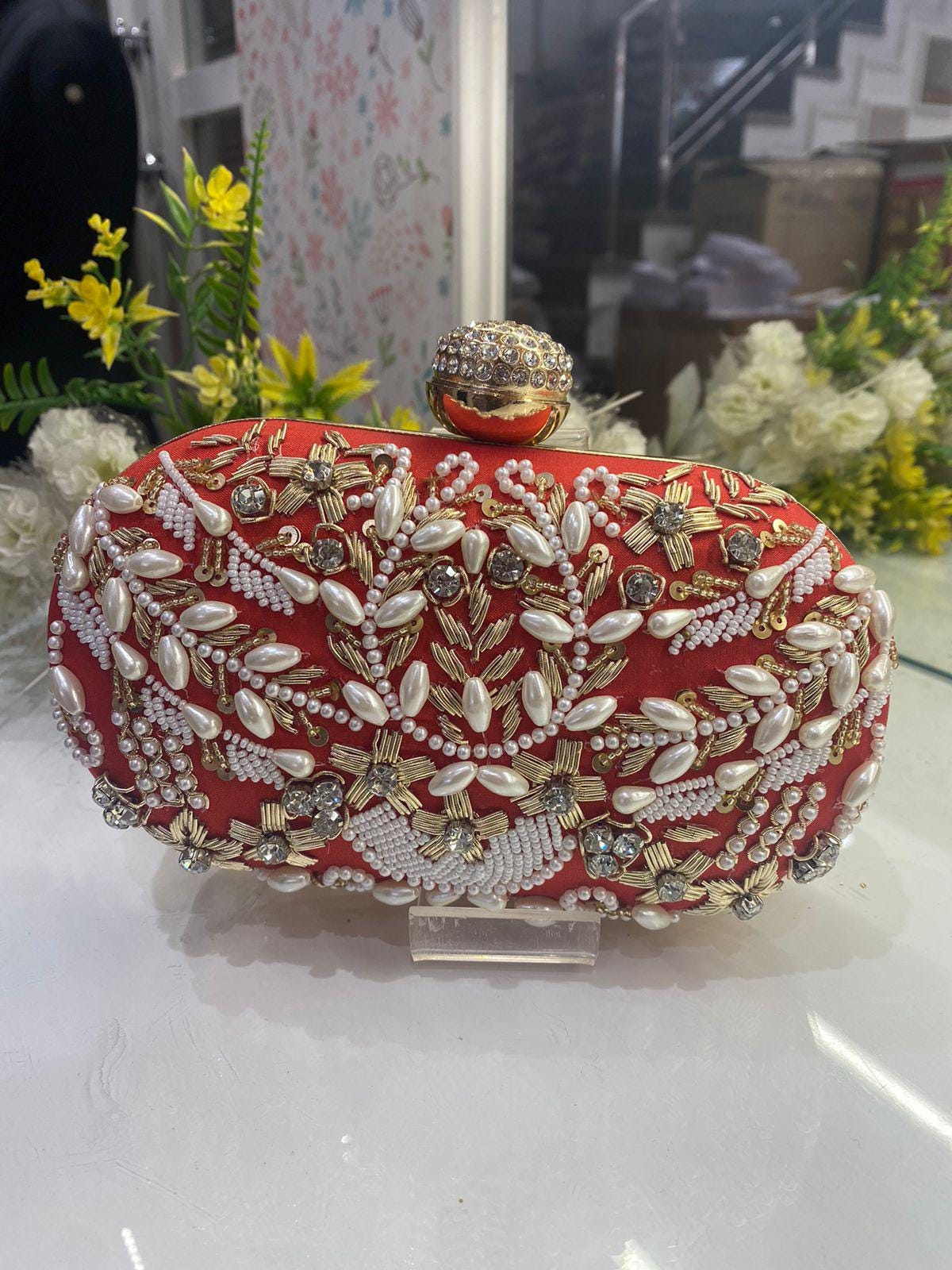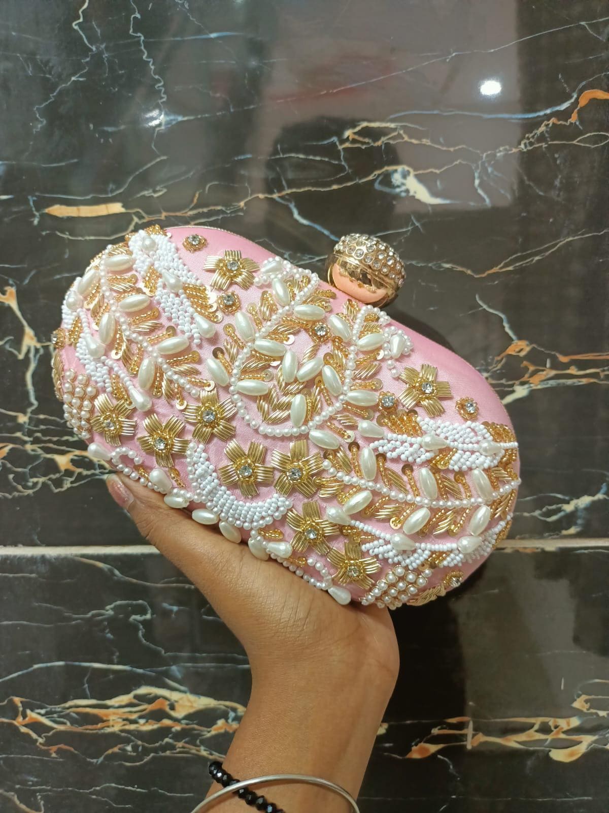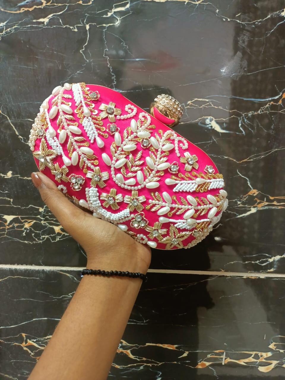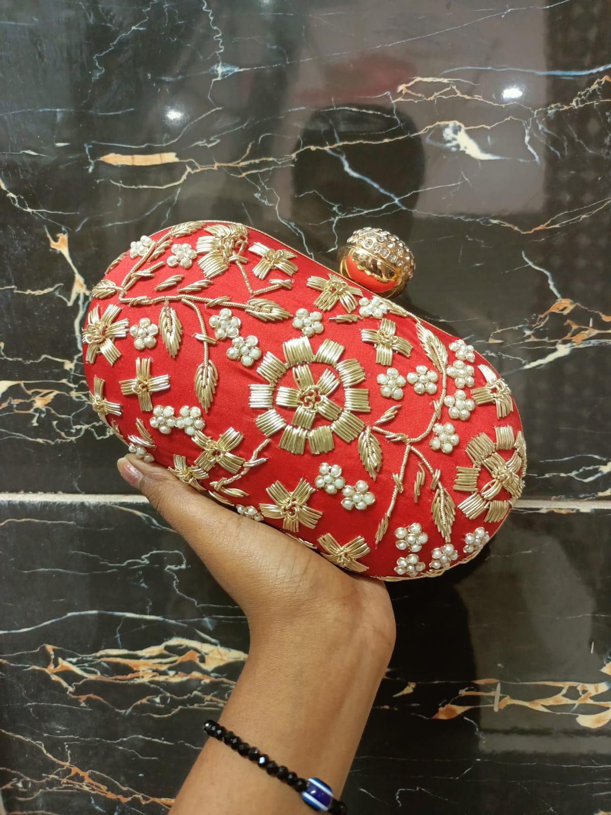 * Details: Intricate beadwork, shimmering gold sequins, and a secure, jewel-studded metallic clasp