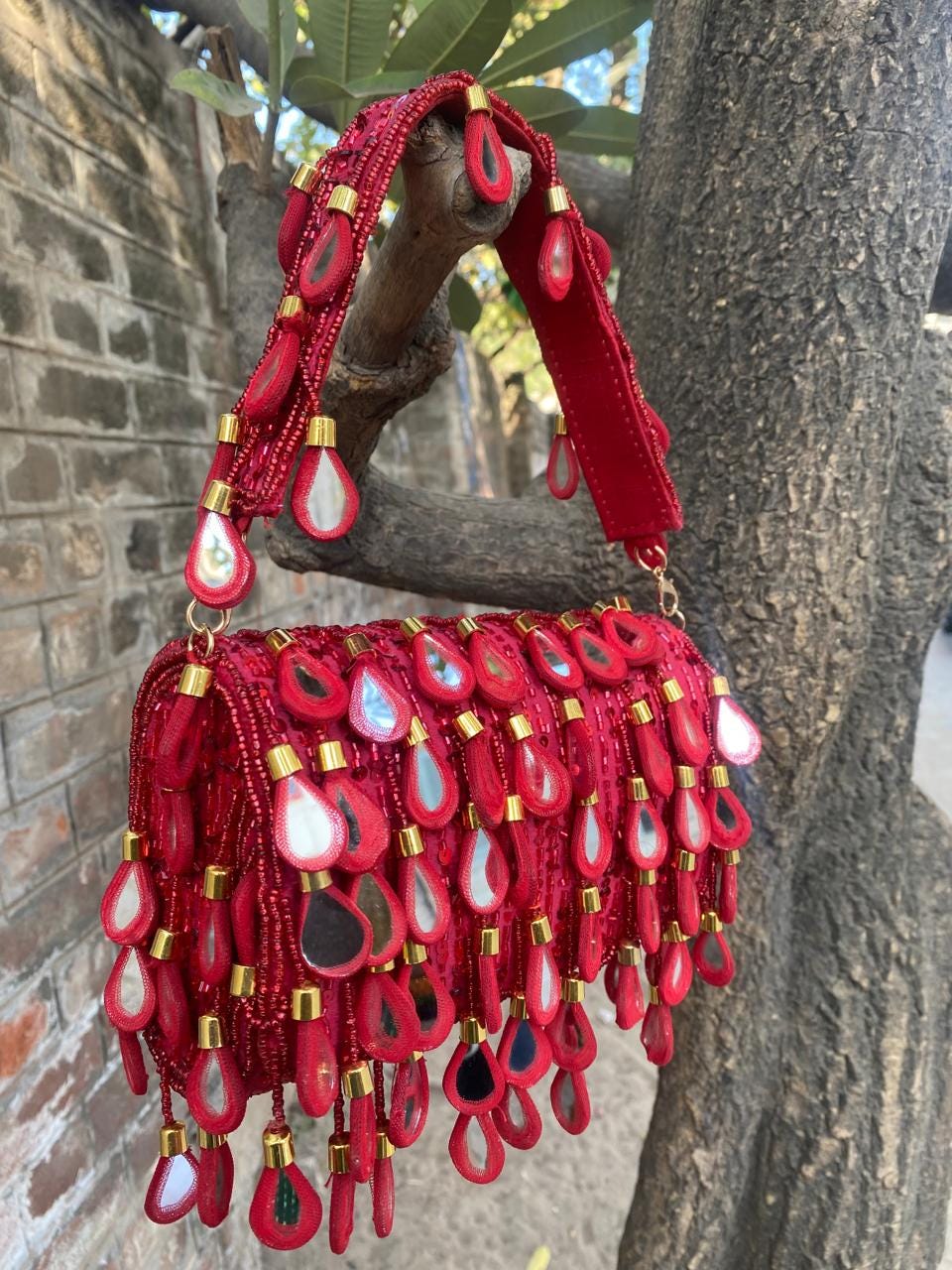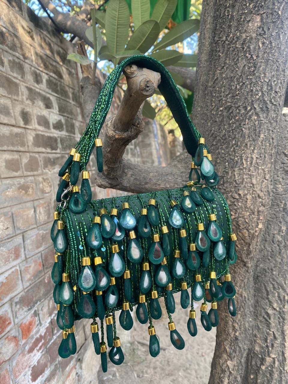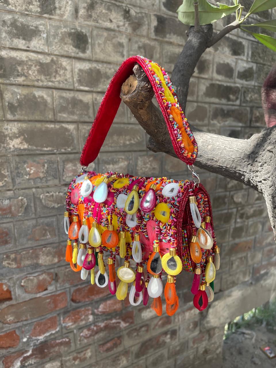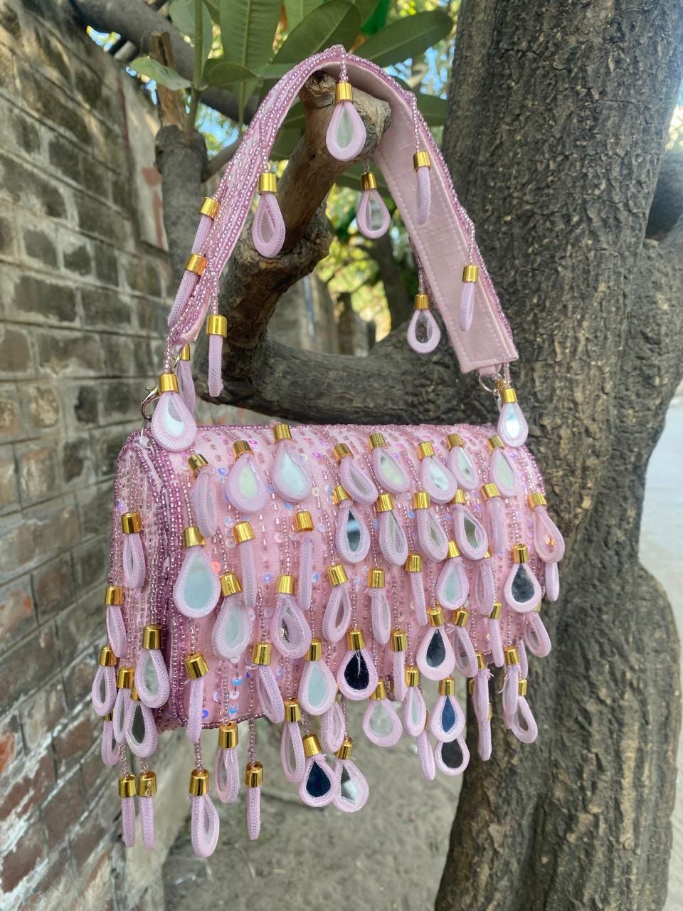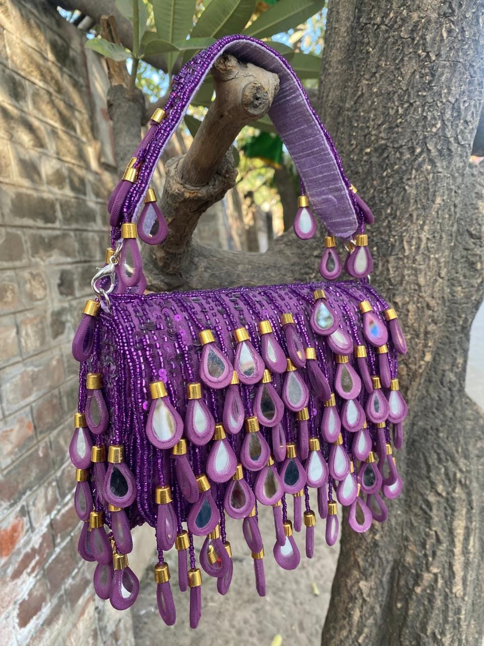 * Care Instructions: Spot clean only; store carefully in a dust bag to protect the delicate mirrors, beadwork, and fringe