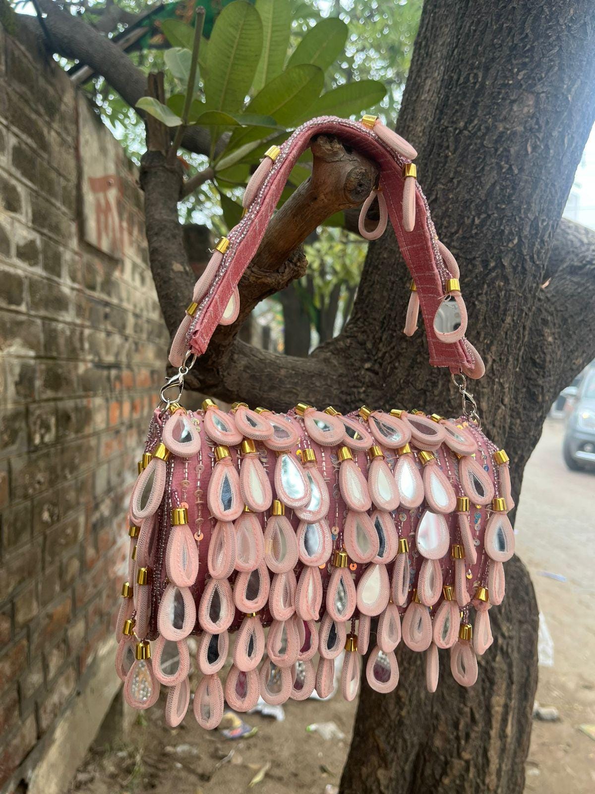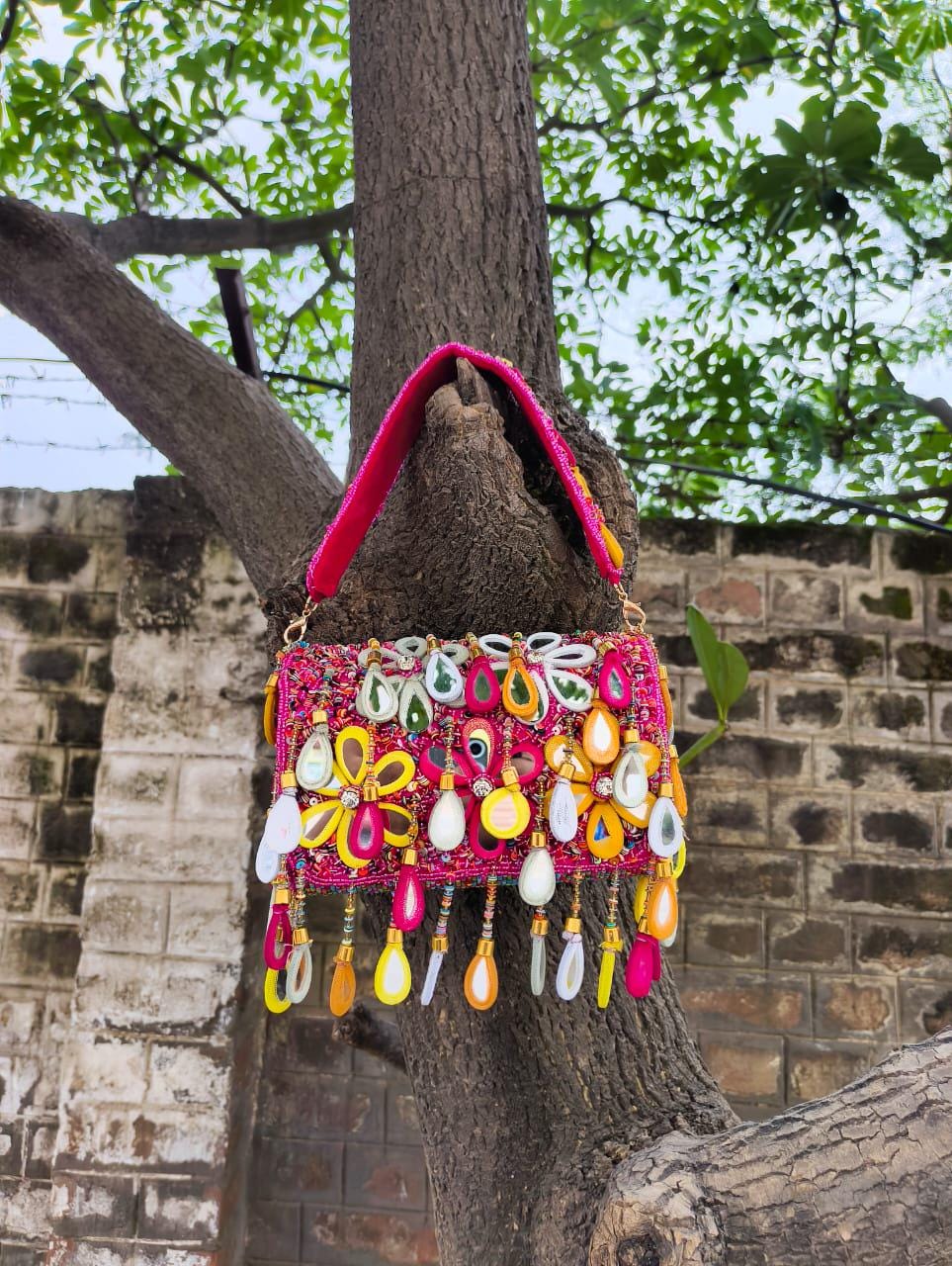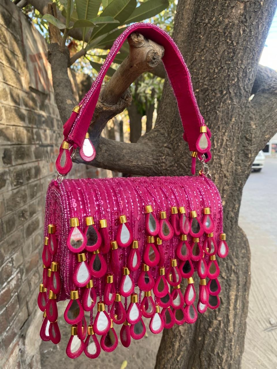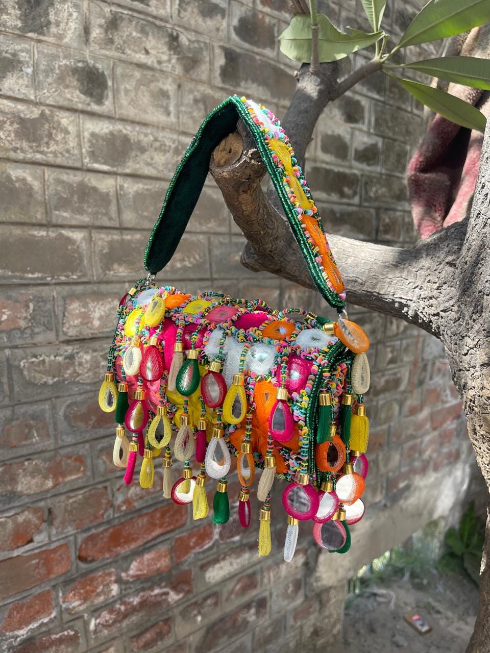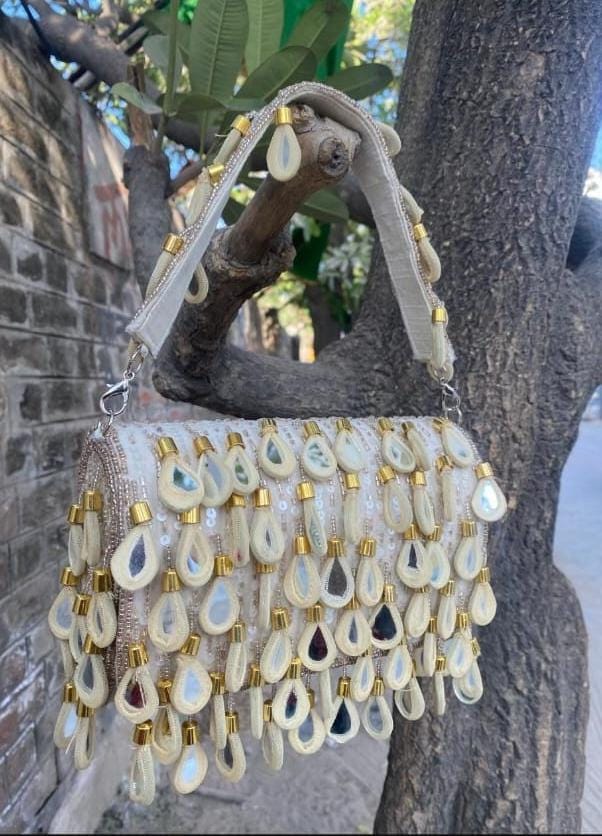 * Care Instructions: Spot clean only; store carefully in a dust bag to protect the delicate mirrors, beadwork, and fringe